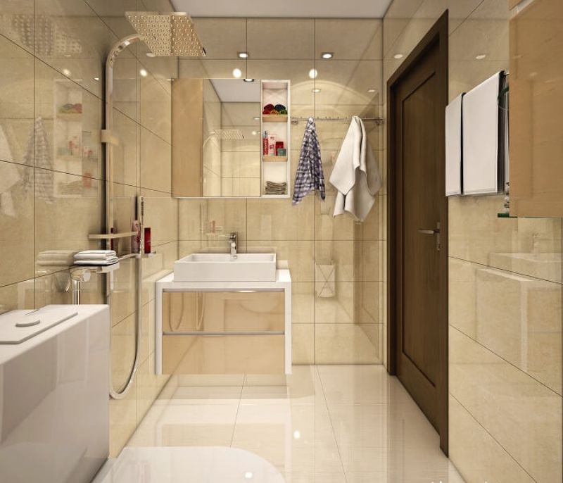 Nếu nhà vệ sinh nhà bạn khá hạn hẹp thì nên đảm bảo được không gian sử dụng cũng như học cách sử dụng các vật liệu để phóng to không gian như tăng thêm các phụ kiện trang trí, dụng cụ nhà tắm trên cao mà không tốn diện tích sàn.
