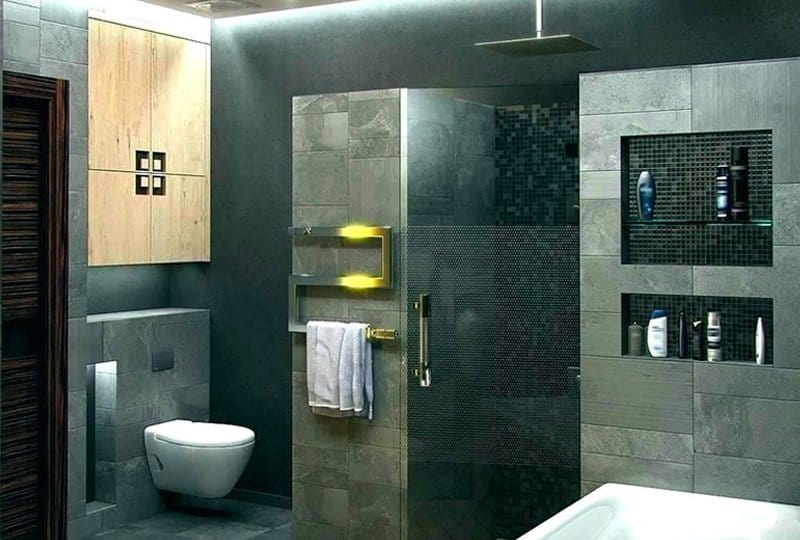 Phòng tắm có diện tích nhỏ bạn cần tận dụng tối đa không gian. bạn nên đóng thêm kệ mở trên tường để phù hợp với diện tích căn phòng và khả năng lưu trữ đồ. Các kệ này nên được thiết kế chịu nước và kích thước vừa đủ để lưu trữ. Hạn chế sử dụng kệ mỏng, sáng màu để tránh cảm giác cồng kềnh. Nên sử dụng thêm những chiếc giỏ để đồ sẽ khiến phòng tắm thêm gọn gàng hơn.