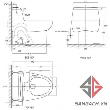 Bản Vẽ Kỹ Thuật Bồn Cầu American Standard 2050-WT Dòng IDS Natural: