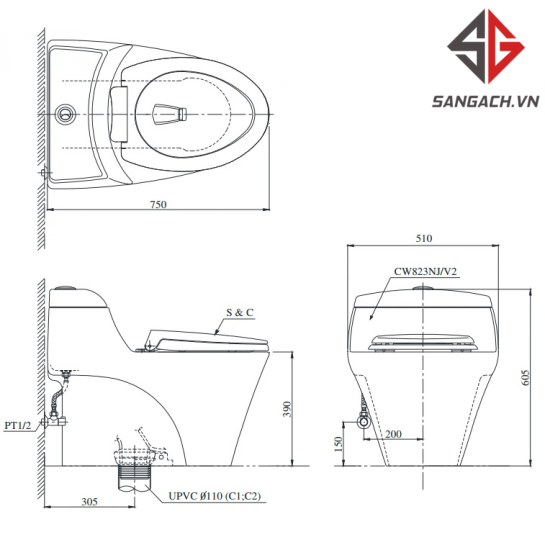- Bao gồm: Thân cầu CW823NJ/V2 (sx Indonesia), nắp đóng êm TC393VS (sx Malaysia) và van khoá, gioăng đế