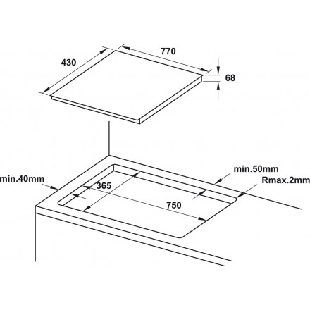 Bản vẽ bếp điện từ HC-IF77D 536.61.665 Hafele 3 vùng nấu