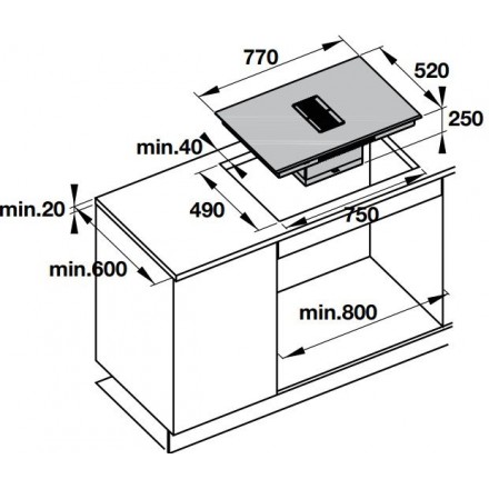 Bản vẽ bếp điện từ 539 66 822 kết hợp hút mùi Hafele 4 vùng nấu