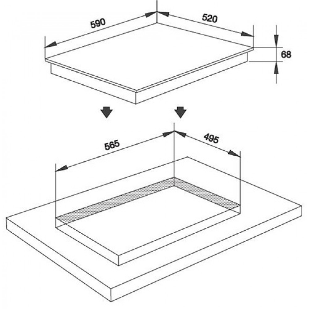 - Kích thước khoét đá : 565 x 495 mm (DxR)