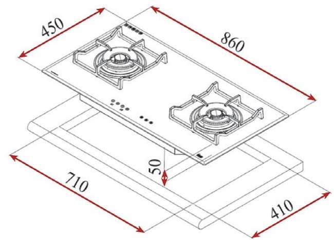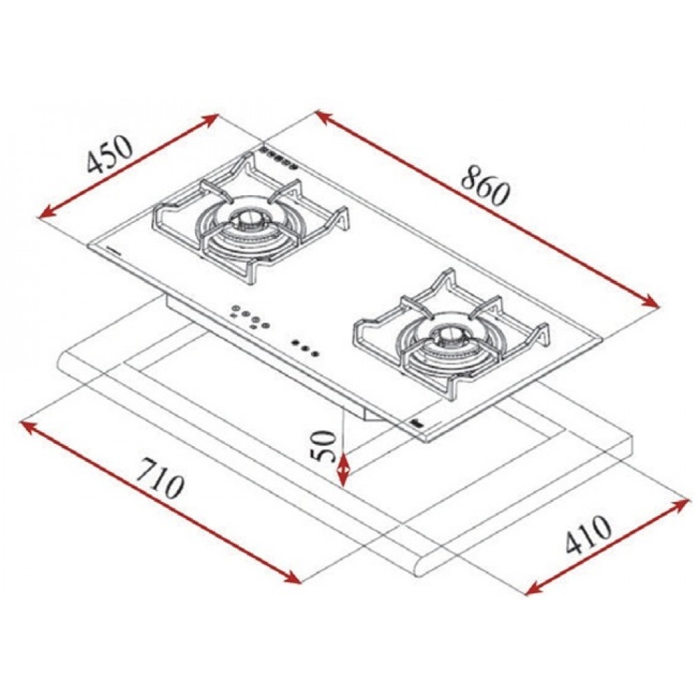Bản vẽ bếp ga âm Teka đơn CGW LUX 86 2G AI AL 2TR CI 40215101