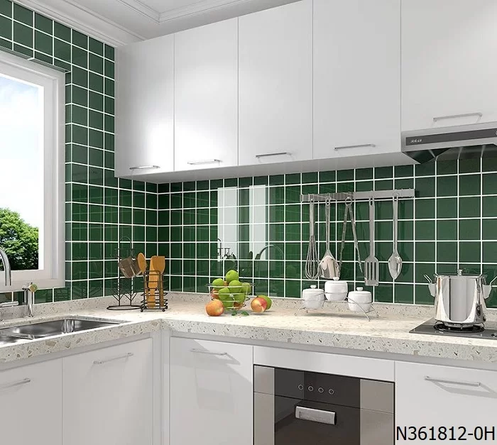 Gạch vuông ốp tường màu xanh cho bếp
