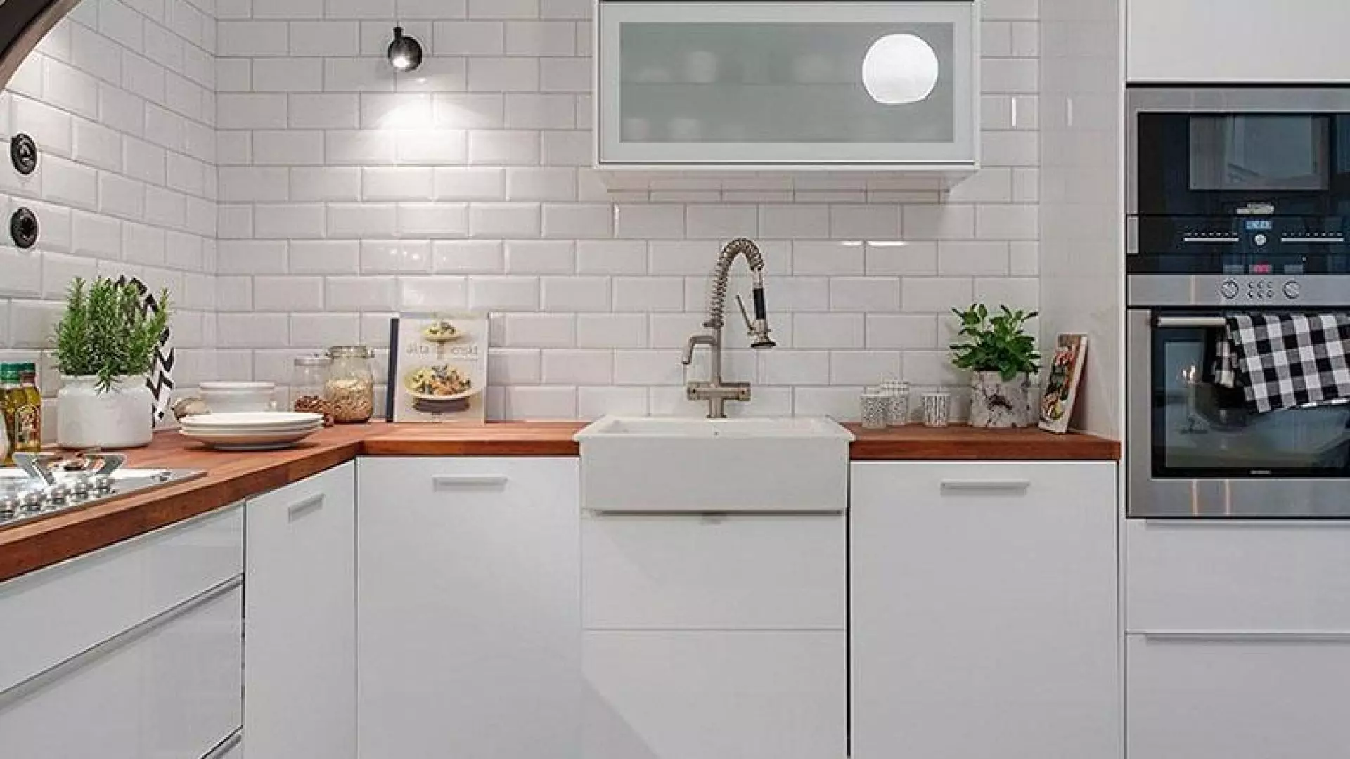 Gạch thẻ màu trắng cho bếp nhỏ