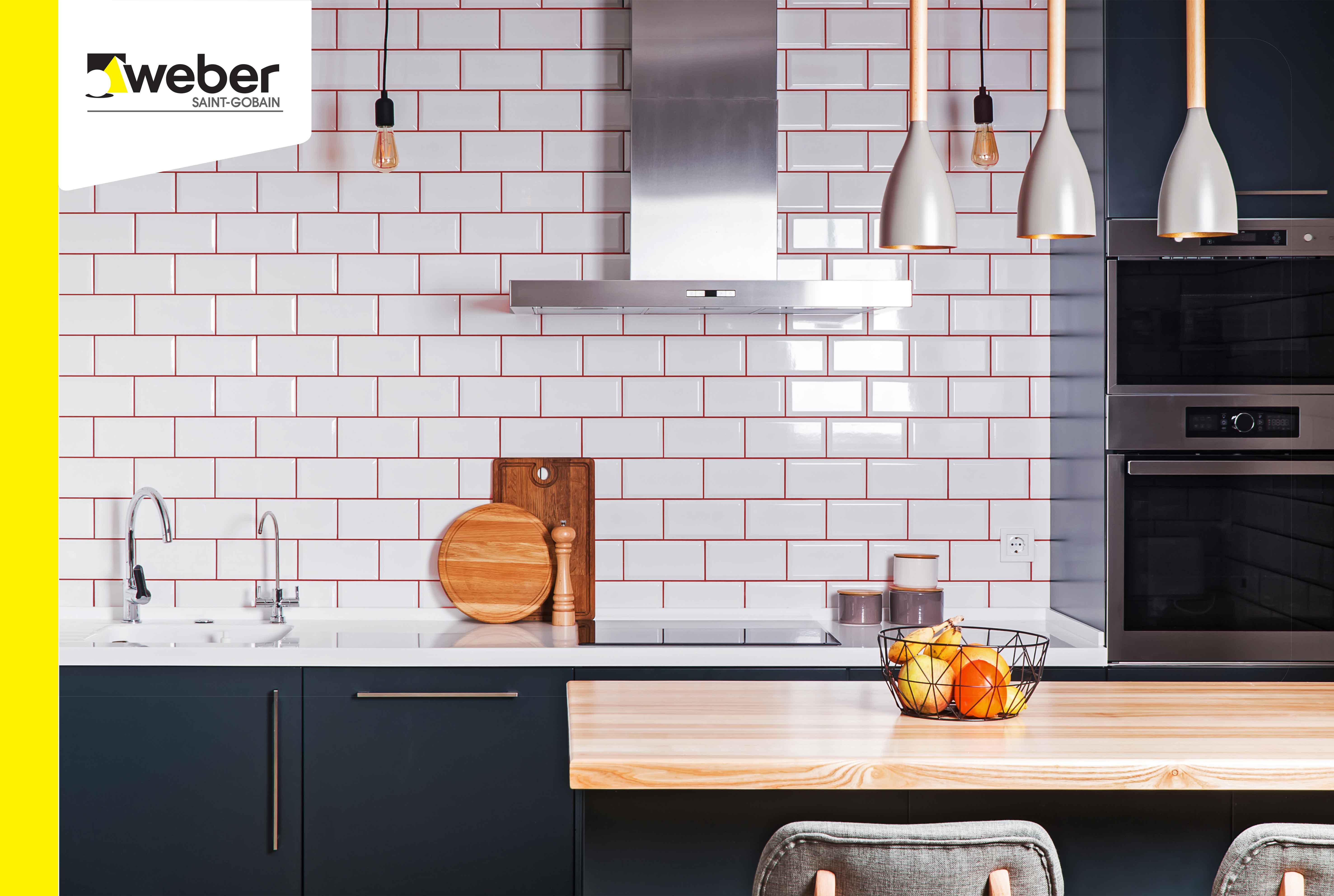 Lựa chọn màu sắc gạch ốp tường phù hợp, keo chà ron weber tạo điểm nhấn cho không gian bếp