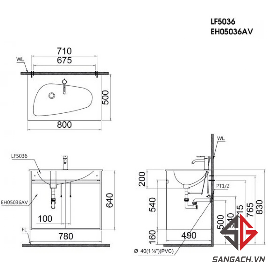 Bản vẽ kỹ thuật Bộ Tủ Lavabo Caesar Treo Tường