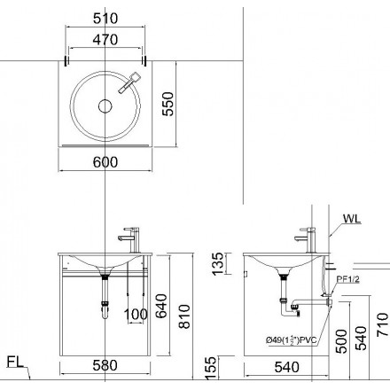Bản vẽ kỹ thuật Bộ Tủ Lavabo Caesar Treo Tường