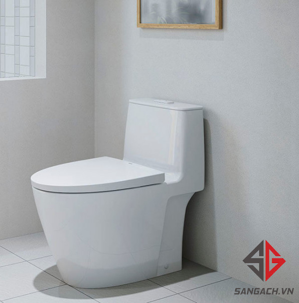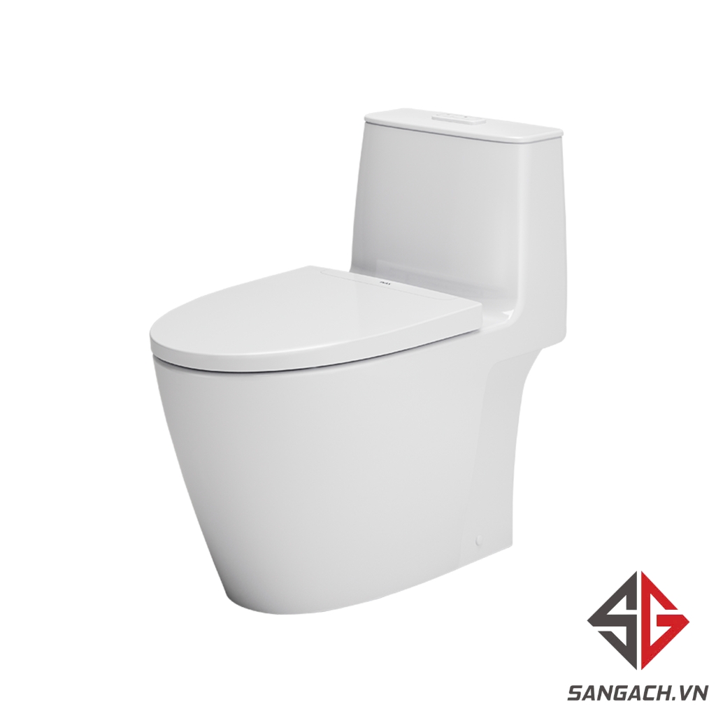 Thiết kế tiện nghi: Nắp bệ ngồi đường cong rộng rãi, đóng êm, mang lại cảm giác thoải mái.