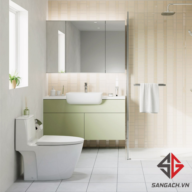 Công nghệ Aqua Ceramic: Ngăn ngừa vết ố vàng và cặn nước bám trên bề mặt sứ, giảm tần suất vệ sinh và hạn chế sử dụng hóa chất tẩy rửa.