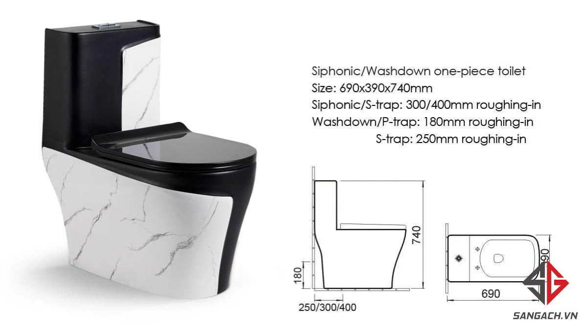 - Kiểu dáng BỒN CẦU độc đáo, màu trắng và đen kết hợp sang trọng và tao nhã, chất lượng đạt chuẩn quốc tế.