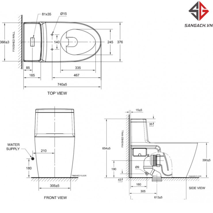 Bản Vẽ Kỹ Thuật Bồn Cầu American Standard 2007-WT Dòng Acacia E: