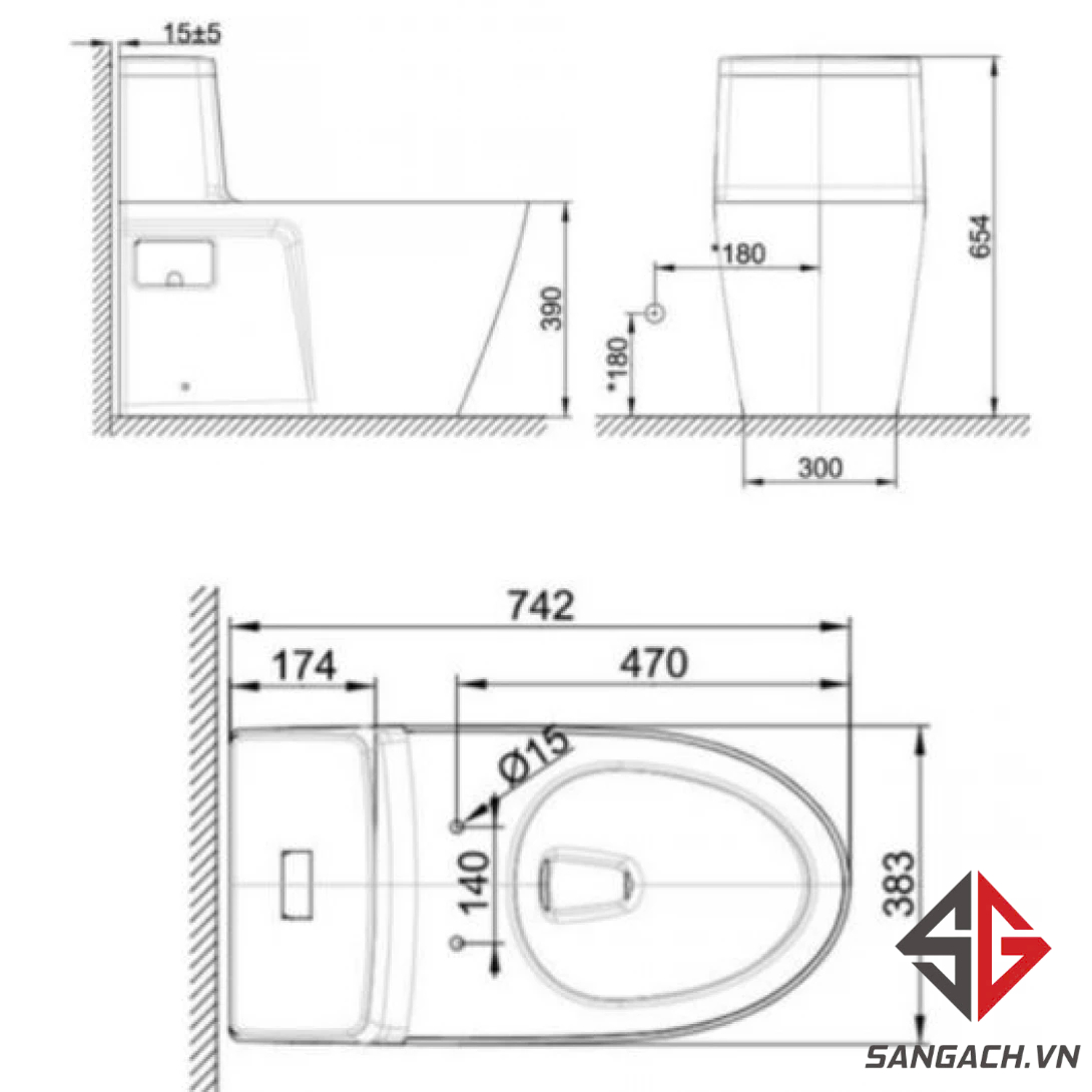 • Kích thước nắp rửa: 535 x 472 x 173 mm