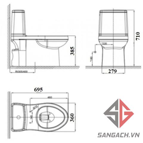 Bản Vẽ Kĩ Thuật Bồn Cầu American Standard VF-1858S2 Cozy