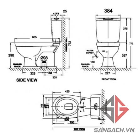 Bản Vẽ Kỹ Thuật Bồn Cầu American Standard VF-2321 (VF-3322+VF-4331):