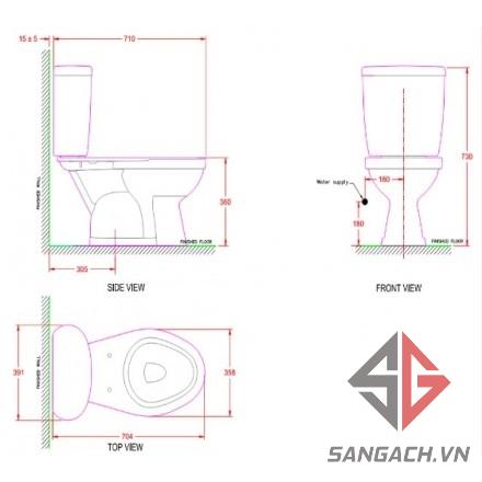 Bản Vẽ Kỹ Thuật Bồn Cầu American Standard VF-2396 (VF-3395+VF-4796):