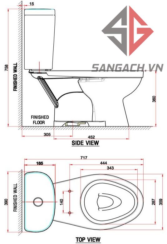 Bản vẽ kĩ thuật bồn cầu American Standard VF-2398S