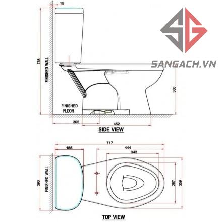 Bản Vẽ Kỹ Thuật Bồn Cầu American Standard VF-2398S3 Nắp Rửa Cơ Dòng WinPlus: