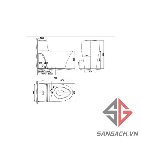 Bản vẽ kĩ thuật bồn cầu American Standard WP-2009PL La Moda