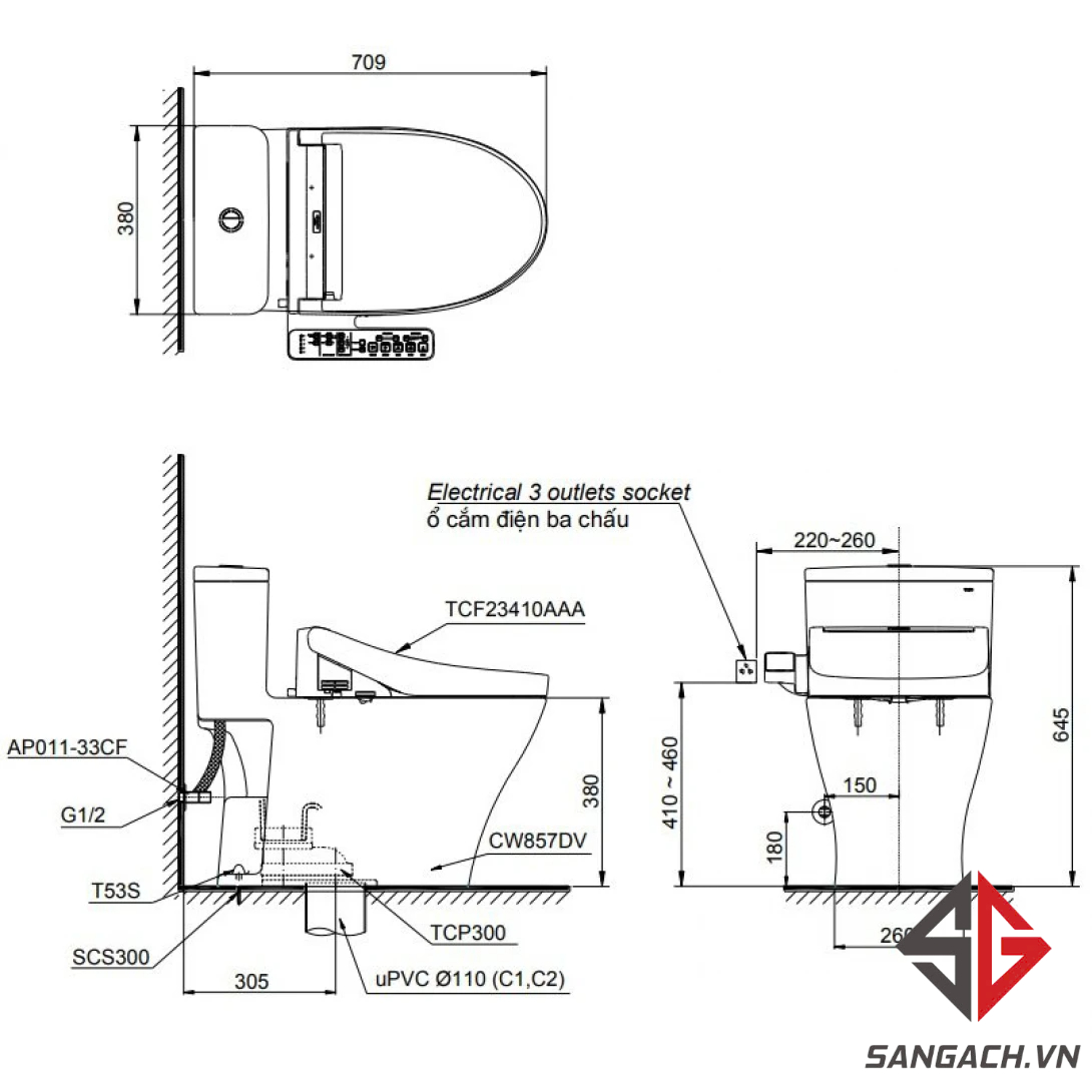 • Nắp bồn cầu điện tử: TCF23410AAA#NW1  - Malaysia