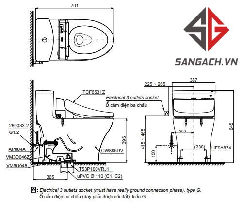 - Bồn cầu TOTO nắp điện tử Washlet TCF6531Z (220V)