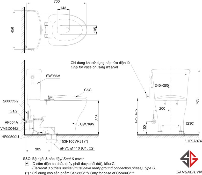 Tính Năng Bồn Cầu Hai Khối TOTO CS986GT8 Nắp TC600VS