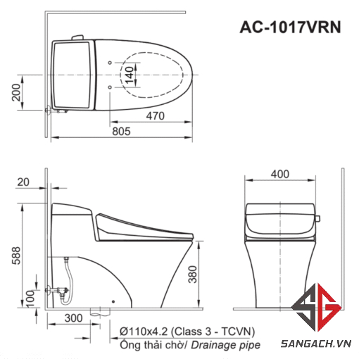 Thông Số Kỹ Thuật Bồn Cầu INAX AC-1017VRN: