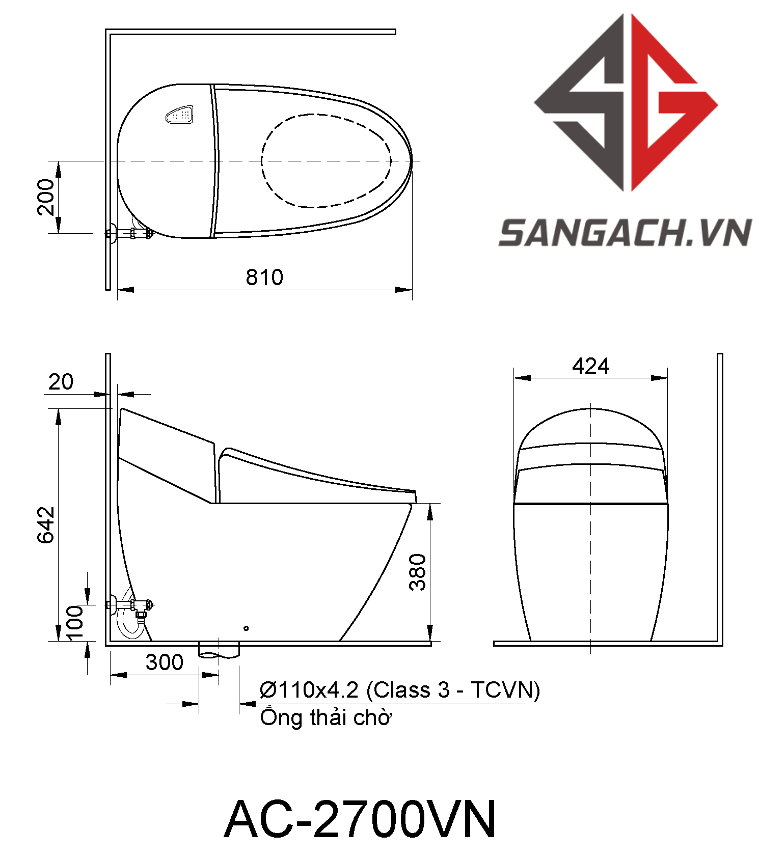 - Bàn cầu AC 2700 VN có thể thay thế nắp bồn cầu thông minh