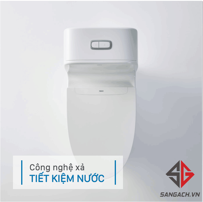 - Bàn cầu Inax 2 khối sử dụng nút xả nhấn 2 chức năng