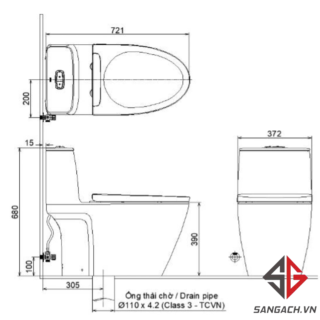 Bản vẽ kích thước bàn cầu 1 khối Inax AC-902VN-2: