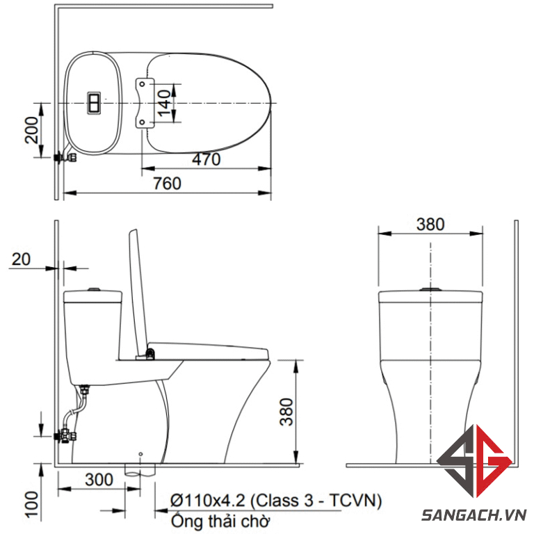 Kiểu xả xi-phông hút mạnh mẽ, đảm bảo lòng bồn cầu luôn sạch sẽ