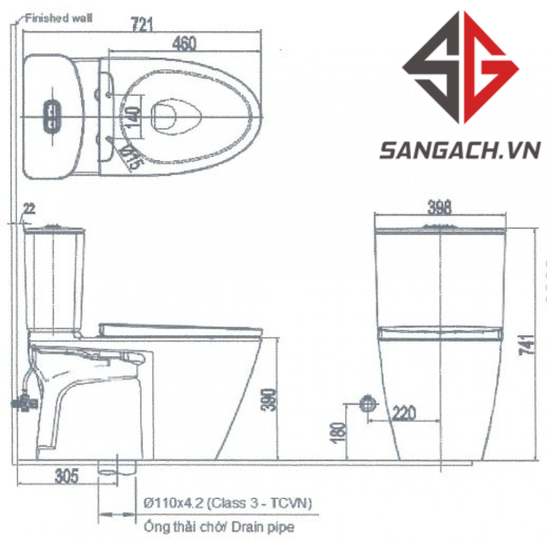 - Kích thước bồn cầu (DxRxC) : 720 x 372 x 740 mm