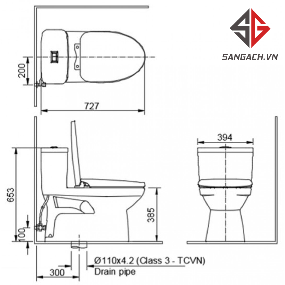 - Tâm thoát bồn cầu : 300mm (+-5)