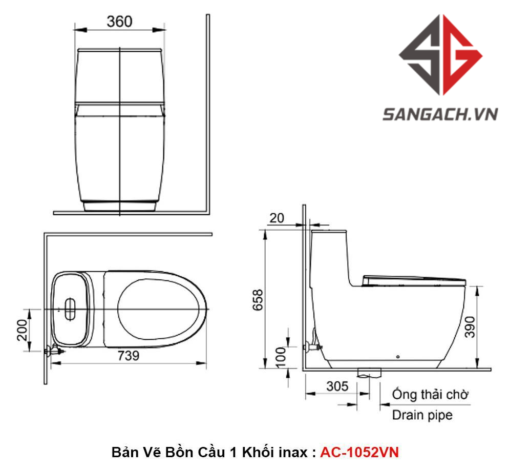 Đế Thải Bồn Cầu Inax PT-1052G52G17 Lắp AC-1052