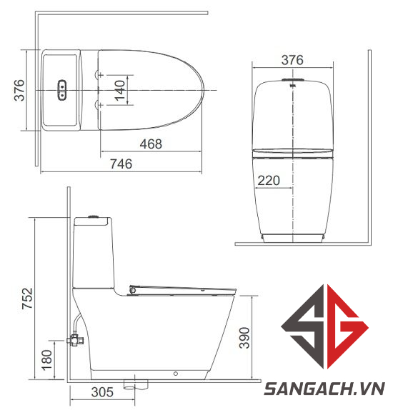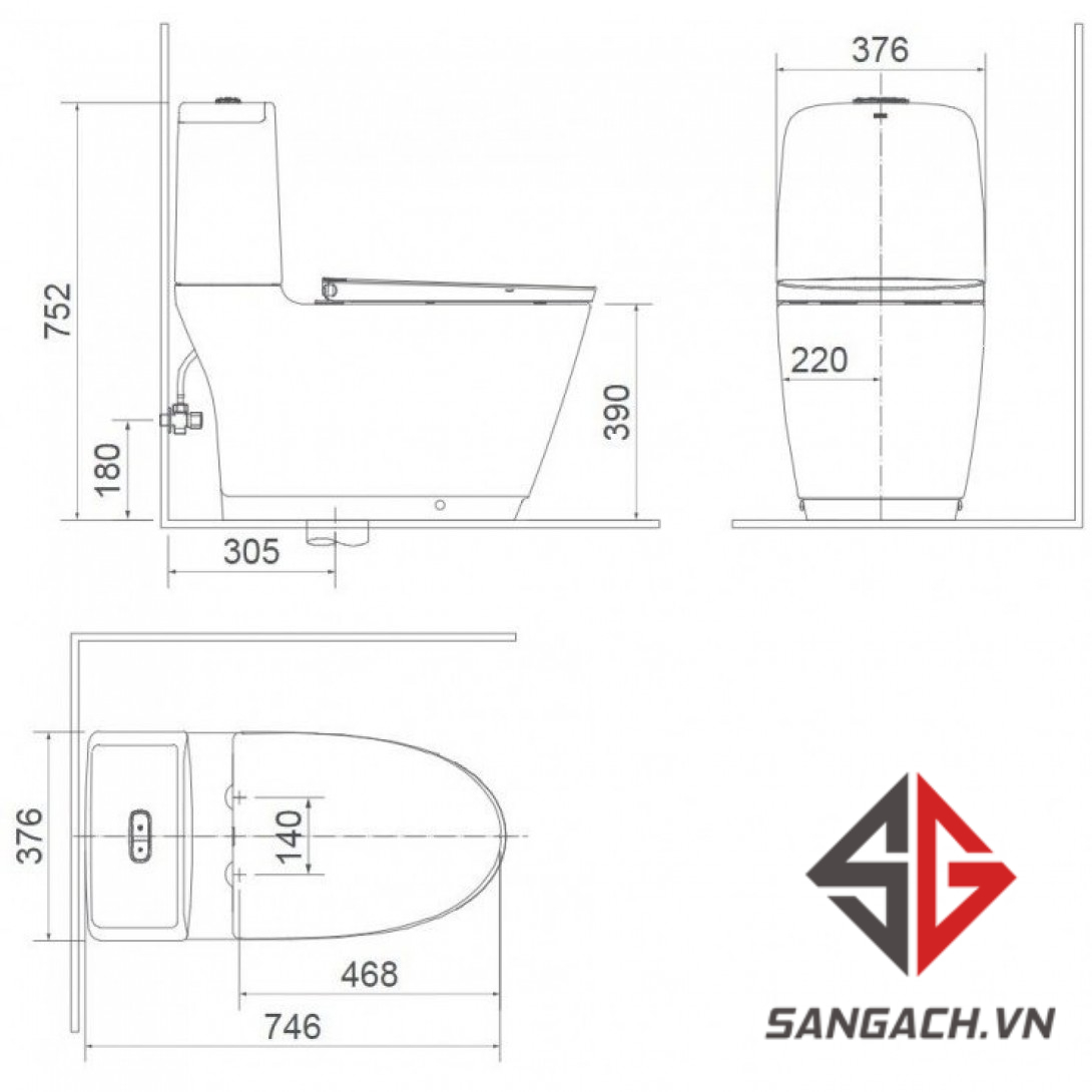 - Kích thước bồn cầu thông minh Inax: 746 x 376 x 752 (dài x rộng x cao)