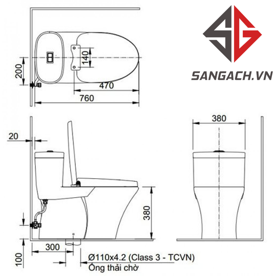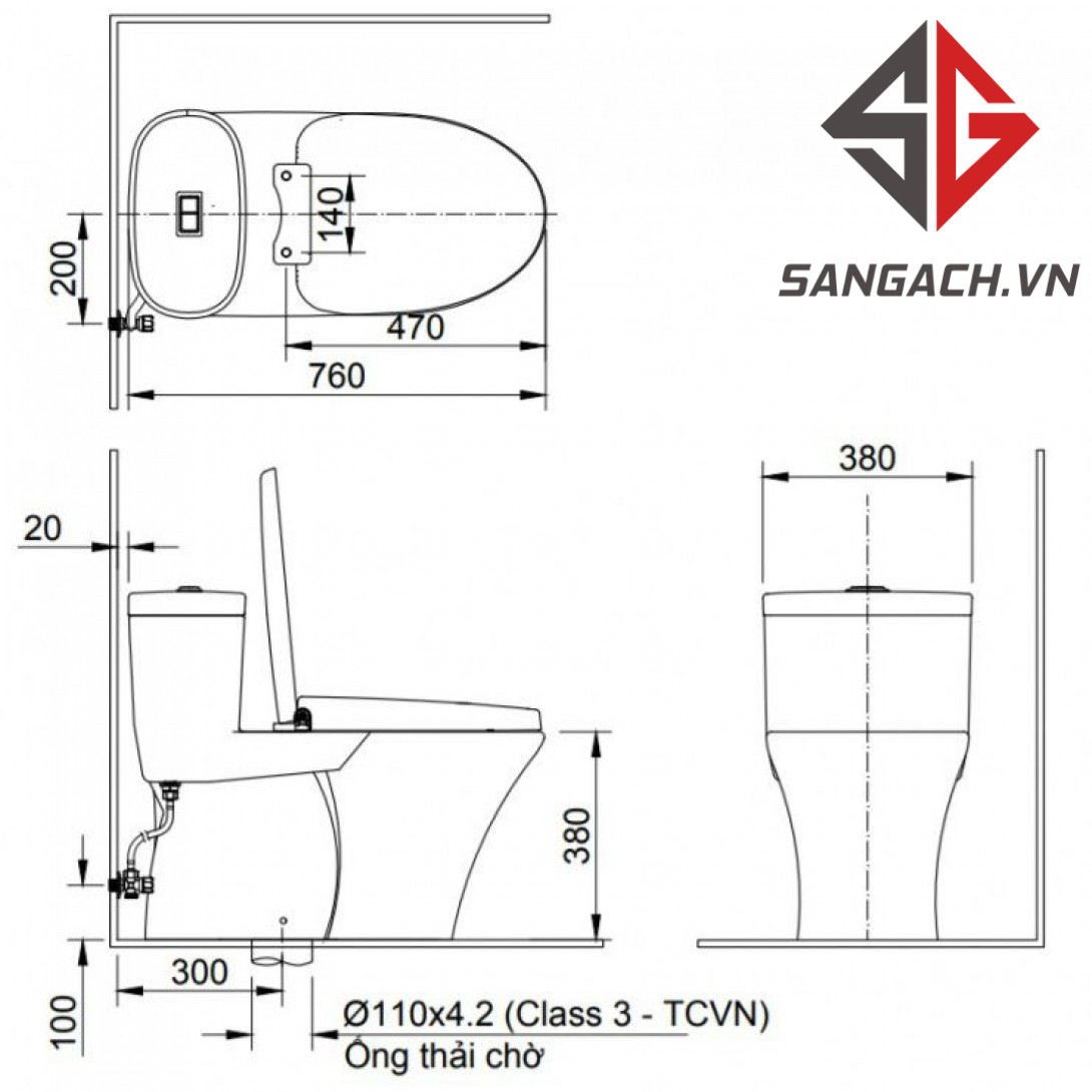 - Kích thước bồn cầu: 736 x 394 x 650 mm (DxRxC)