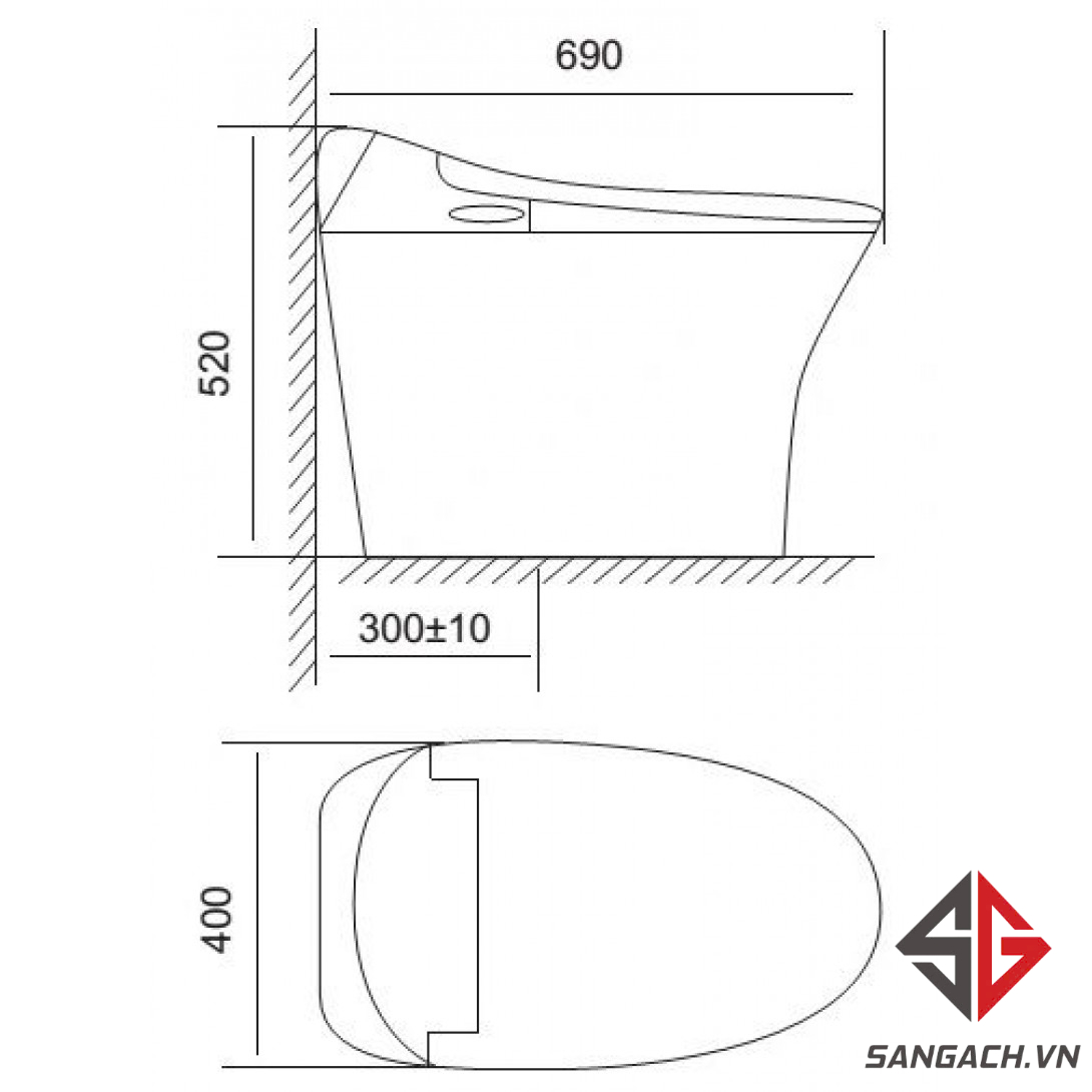 Bản Vẽ Kỹ Thuật Bồn Cầu Thông Minh Viglacera V93: