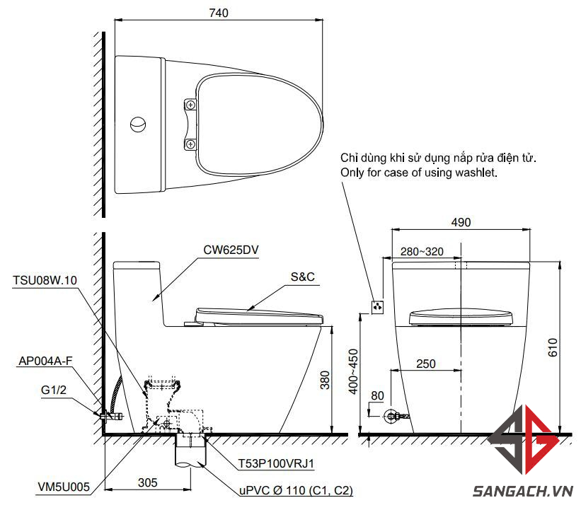 Tính năng bồn cầu vệ sinh TOTO MS625DT2: