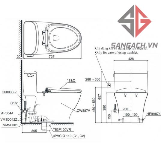 - Phù hợp lắp đặt với nắp rửa điện tử WASHLET (tùy chọn)