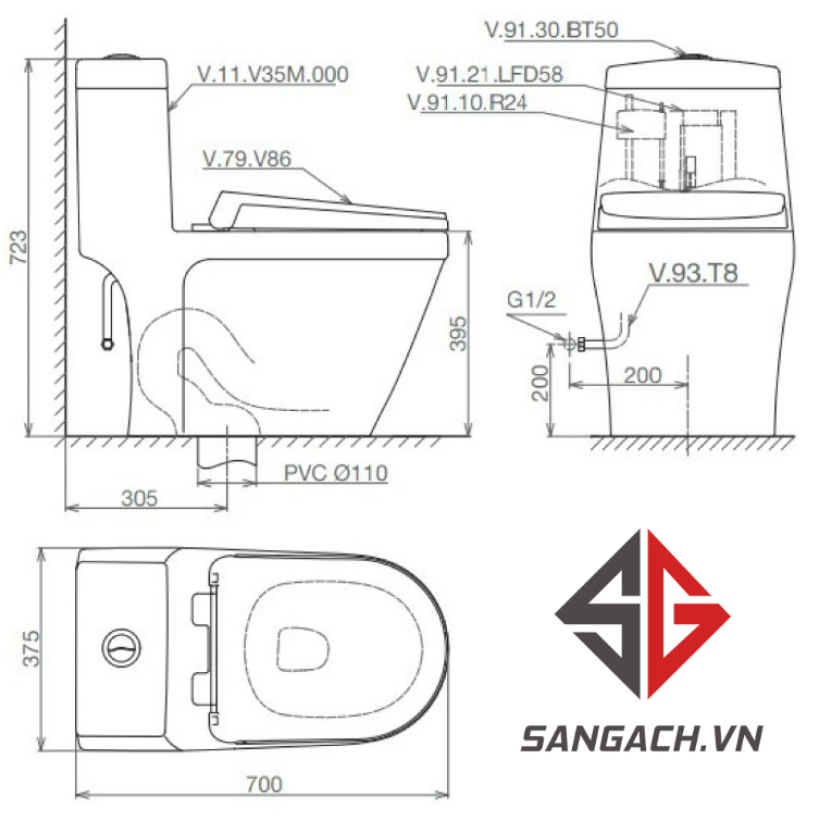 Bản vẽ bệ xí bệt V35 Viglacera 1 khối