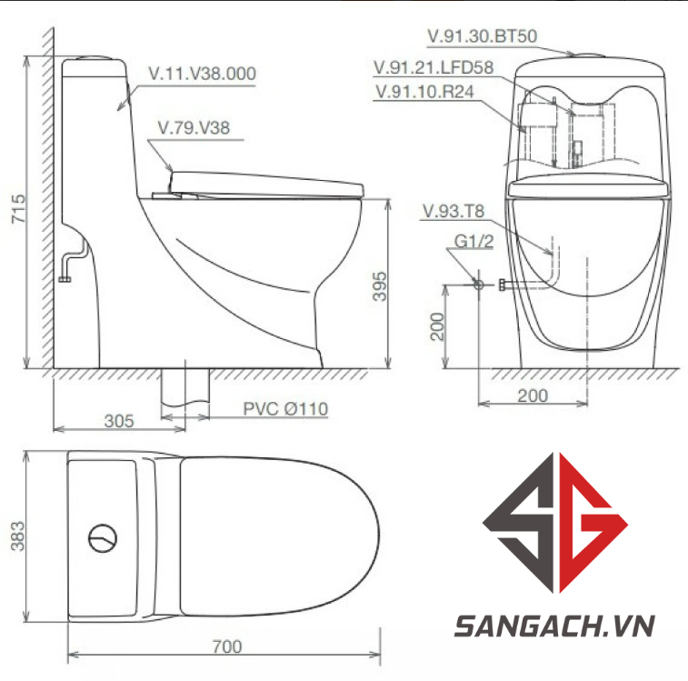 Thông tin cơ bản bồn cầu Viglacera V38: