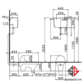 Những thông số kỹ thuật của bồn cầu xổm Caesar C1280