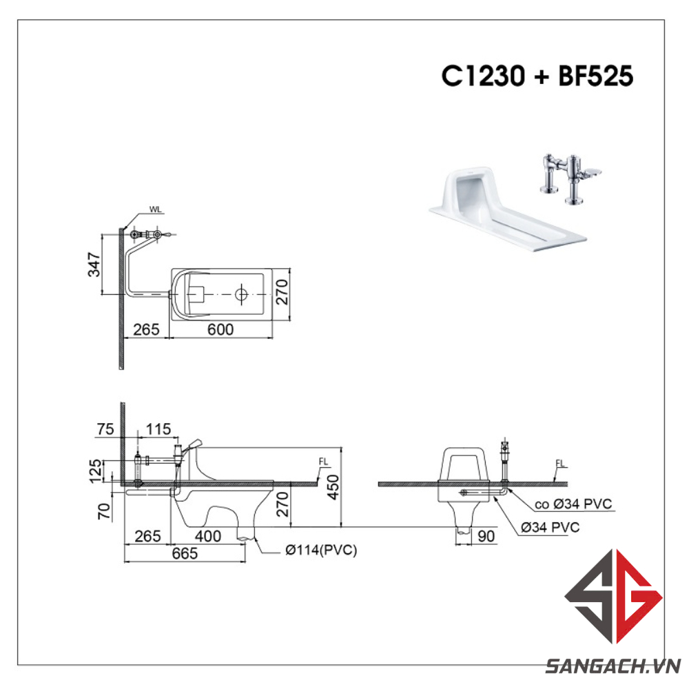 Những thông số kỹ thuật của bồn cầu xổm Caesar C1230