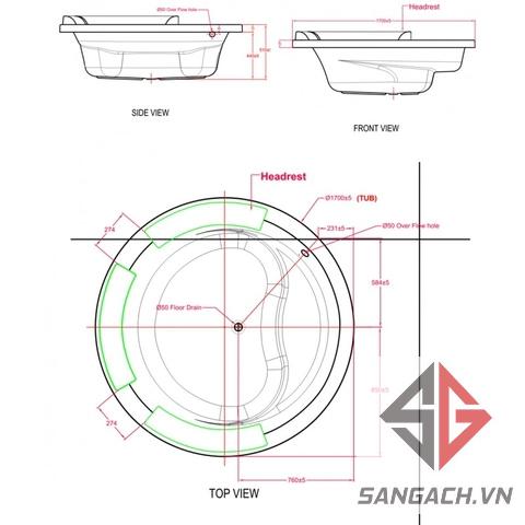 Bản vẽ kĩ thuật bồn tắm American Standard 70200-WT IDS