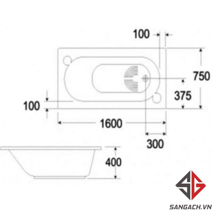 Bản vẽ kĩ thuật bồn tắm American Standard 8160-WT Saturn
