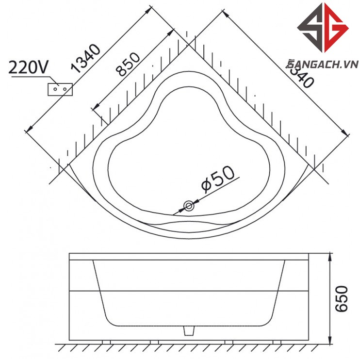 - Kích thước: 1340 1340 x 650 (dài x rộng x cao)