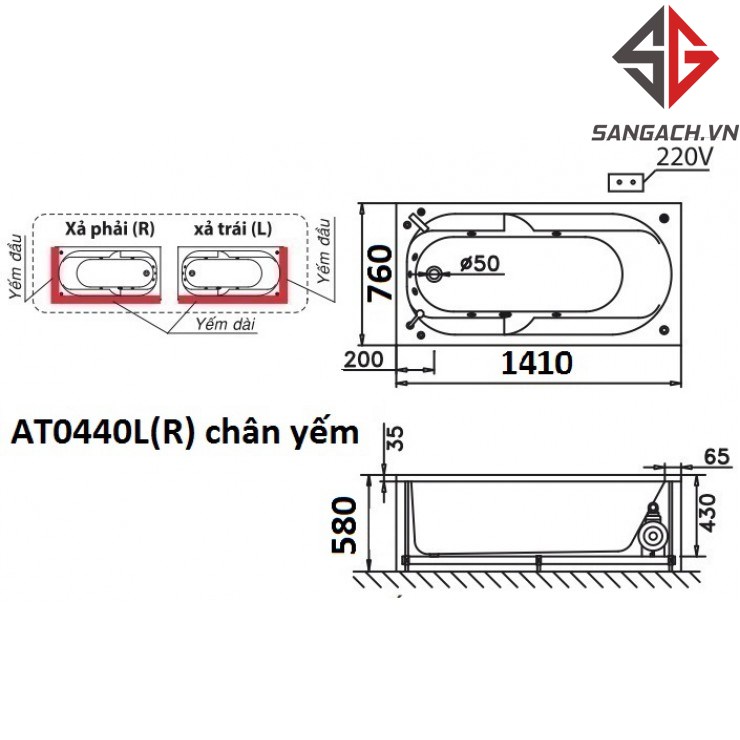 - AT0440R bồn tắm xả phải, yếm trái