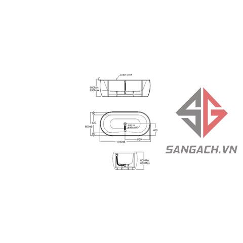 Bản vẽ kĩ thuật bồn tắm American Standard 70190-WT Acacia