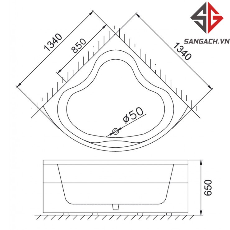 - Kích thước: 1340 x 1340 x 650 (dài x rộng x cao)